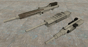 - A small revolving autocannon, capable of putting a lot of bullets in the air very quickly, but overheating very quickly. Very poor accuracy and very heavy for their size.